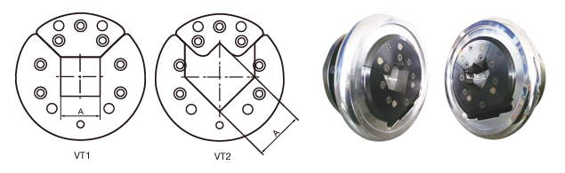 安全卡盤可制作成更換托口嵌件的方式,嵌件材料選用特殊鋼材淬火制成,更極大的延長了使用壽命。根據開口方式的不同,分為VT1型和VT2型。